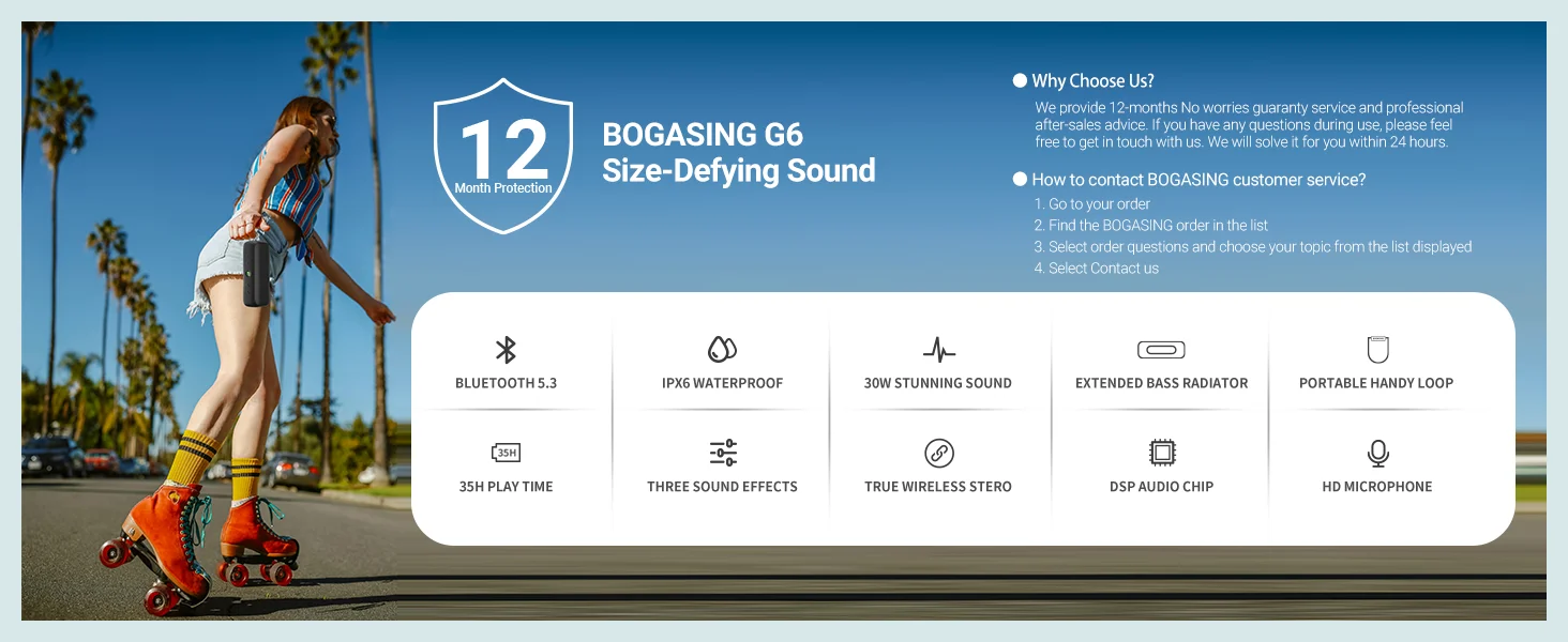 G6 is IPX6 dust & waterproof you can relax and listen with no worries during outdoor adventures and extreme weather.