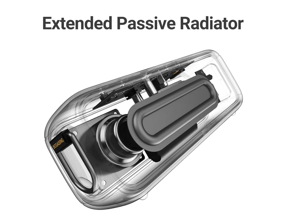 Dual full-range drivers and the extended passive bass radiator (120mm*35mm) for a wider sound field.