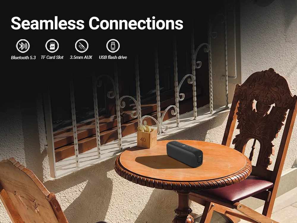 Advanced Bluetooth 5.3 offers a strong, continuous connection within 60 feet of your device. It also supports multiple ways to connect your music.