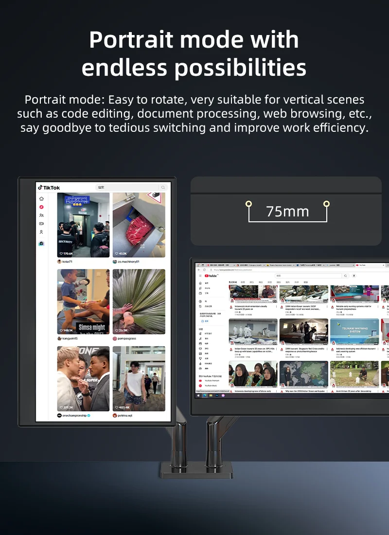 The monitor adopts a small and light design, which is easy to carry. At the same time, it is equipped with dual speakers, which can provide a clear and three-dimensional sound experience.