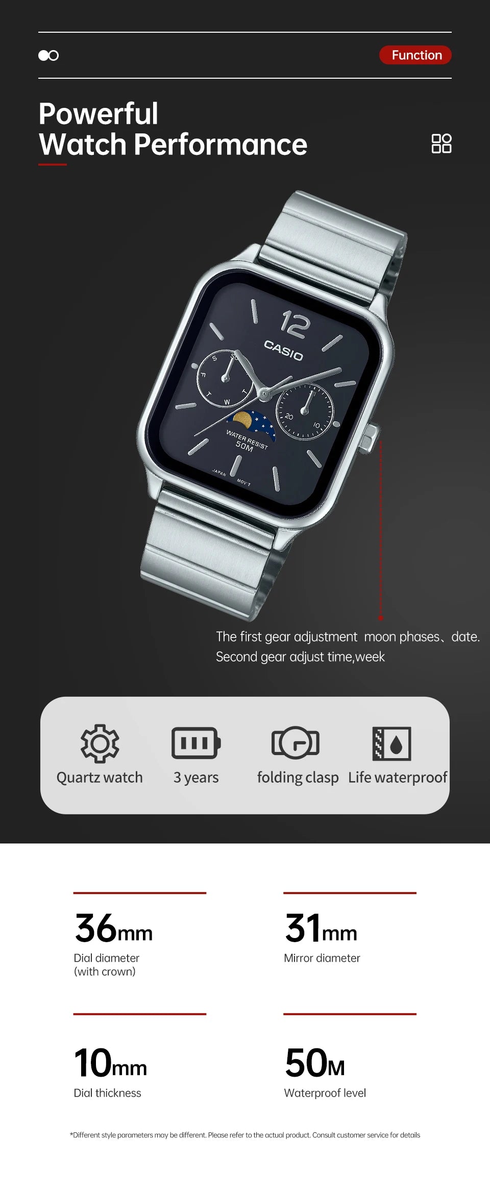 Water Resistance Depth: 5Bar