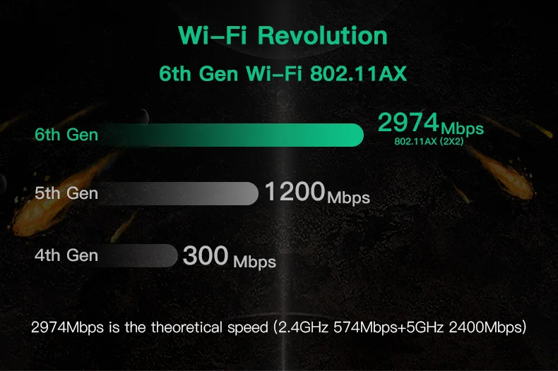 Max speed: Speed up to 2400Mbps (The router must on 160Mhz)