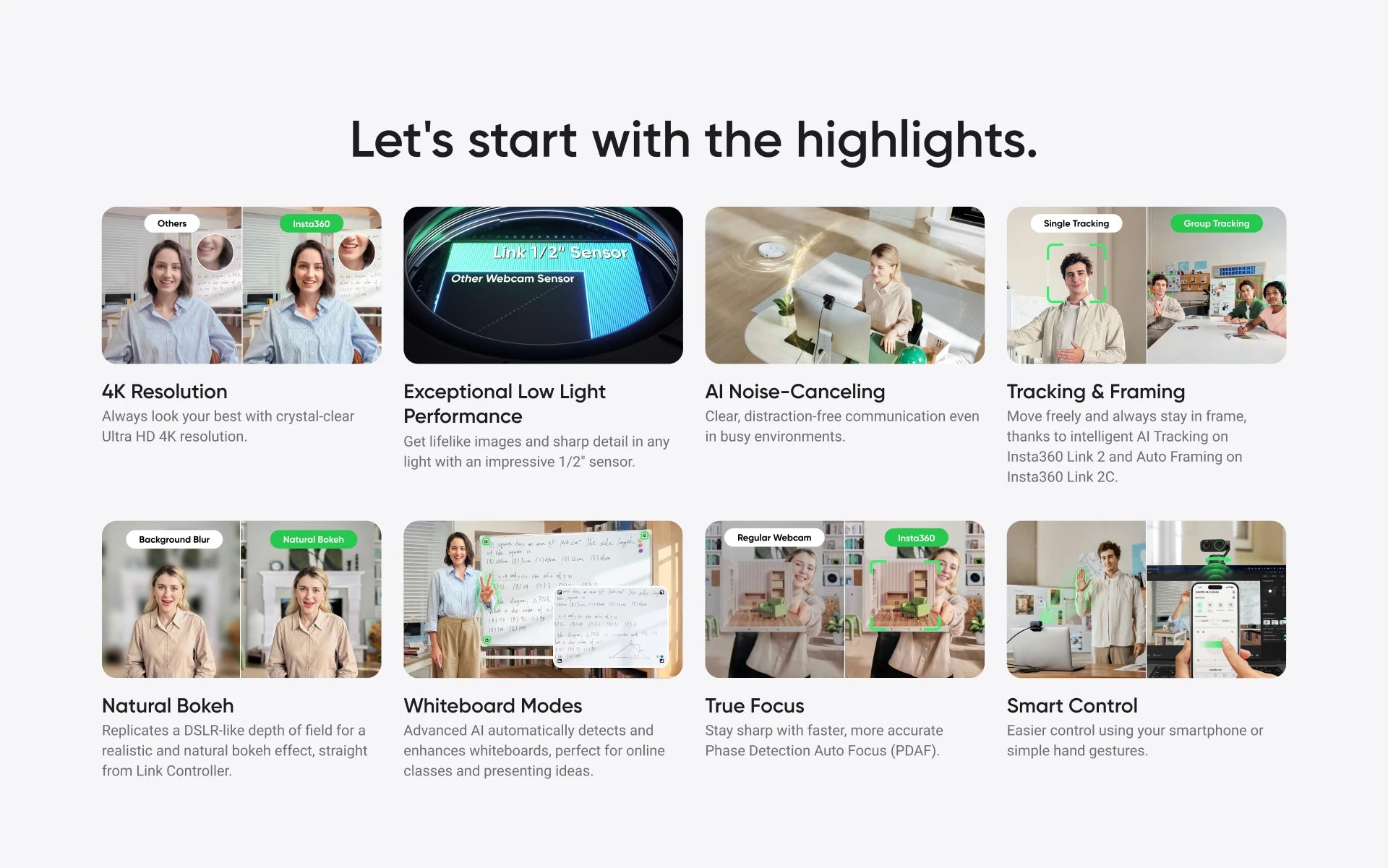 Insta360 Link 2 & 2C- PTZ 4K Webcam for PC/Mac