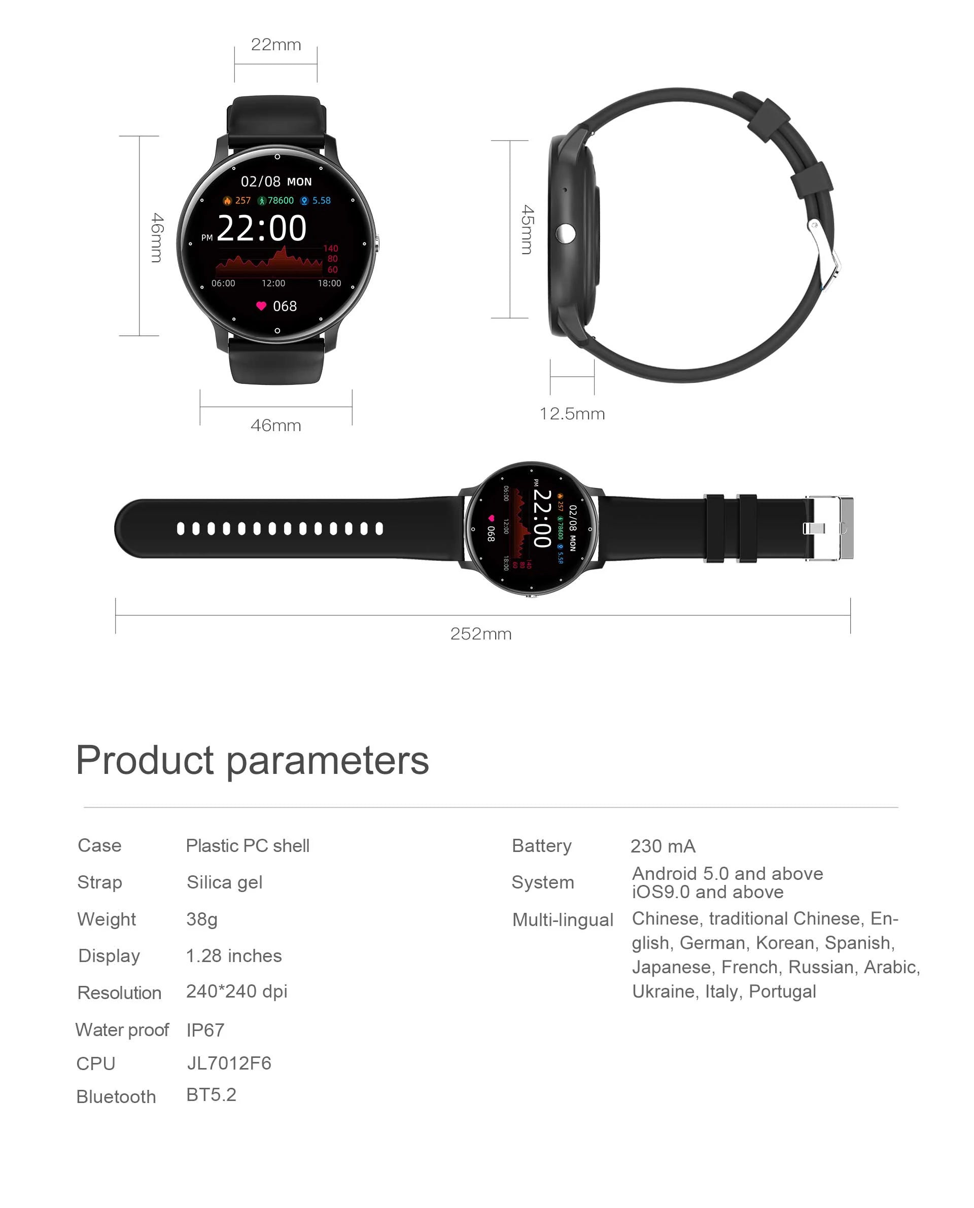 Smart Notifications(Call, Text, Gmail and Smartphone App Notifications), Alarm clock, Flashlight, Timer, Stopwatch, Weather, Controls Smartphone Music and Camera, Find My Phone and Watch, Calculator, Set the screen off time, Do not disturb mode.