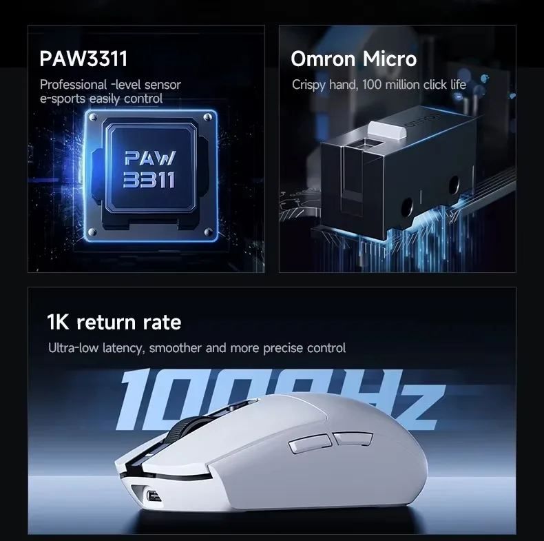 Precise Tracking: PAW3311 sensor with up to 12,000 DPI resolution for accurate, responsive performance.