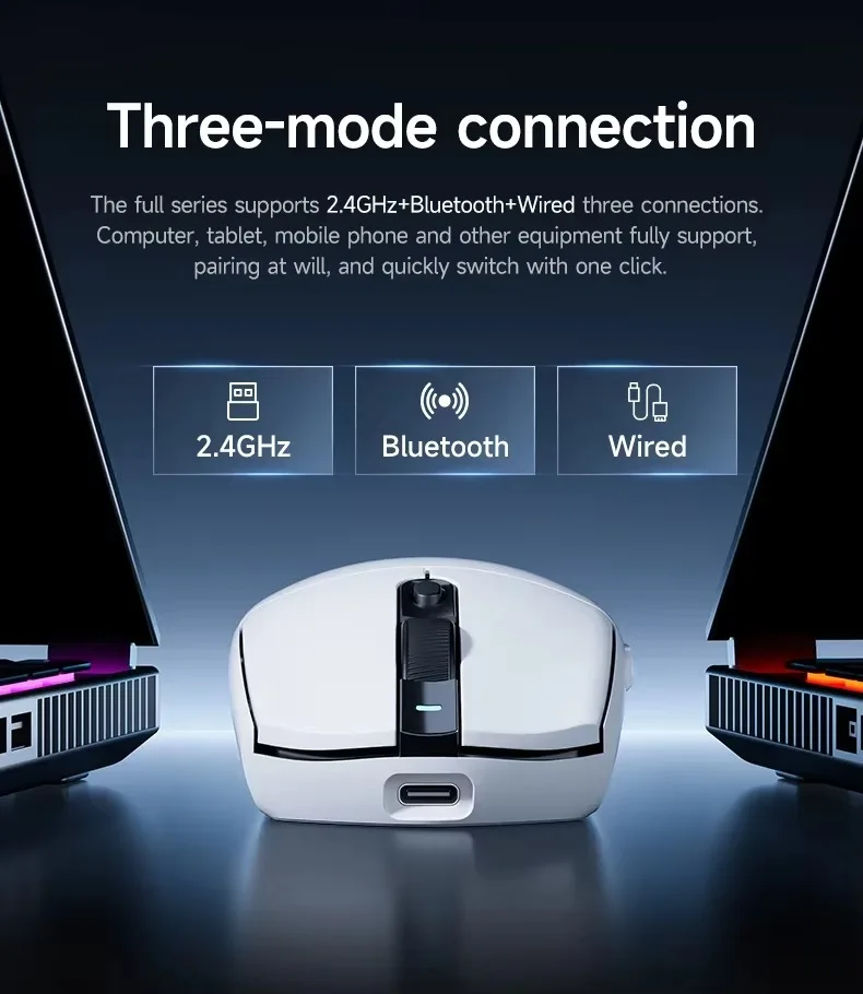 Tri-Mode Connectivity: Switch easily between 2.4G wireless, Bluetooth, and wired modes for versatile use.