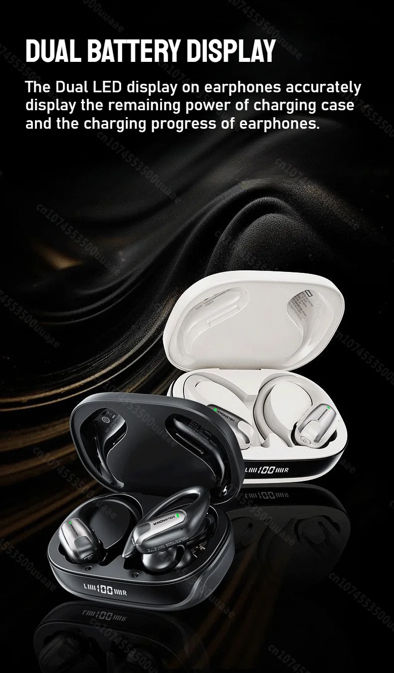 [ Dual Battery Display ] The Dual LED display on earphones accurately display the remaining power of charging case and the charging progress of earphones.