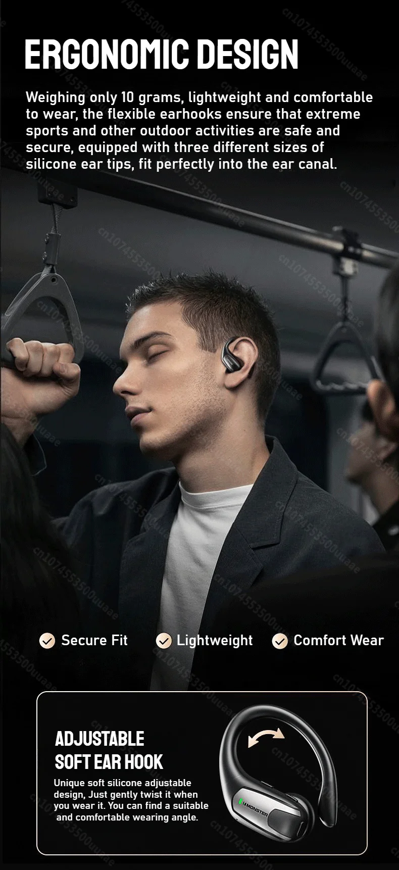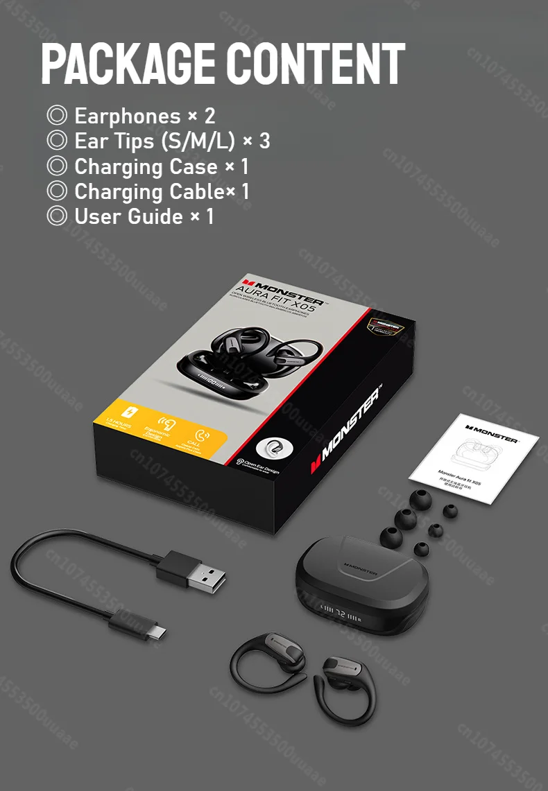 [ Ergonomic Sport Design ] The AuraFit X05 are ergonomically designed, weighing only 10 grams, lightweight and comfortable to wear, the flexible earhooks ensure that extreme sports and other outdoor activities are safe and secure, equipped with three different sizes of silicone ear tips, fit perfectly into the ear canal, won't squeeze your ears, and won't be fatigued or sore after long hours of wear, giving you comfort from the inside out.