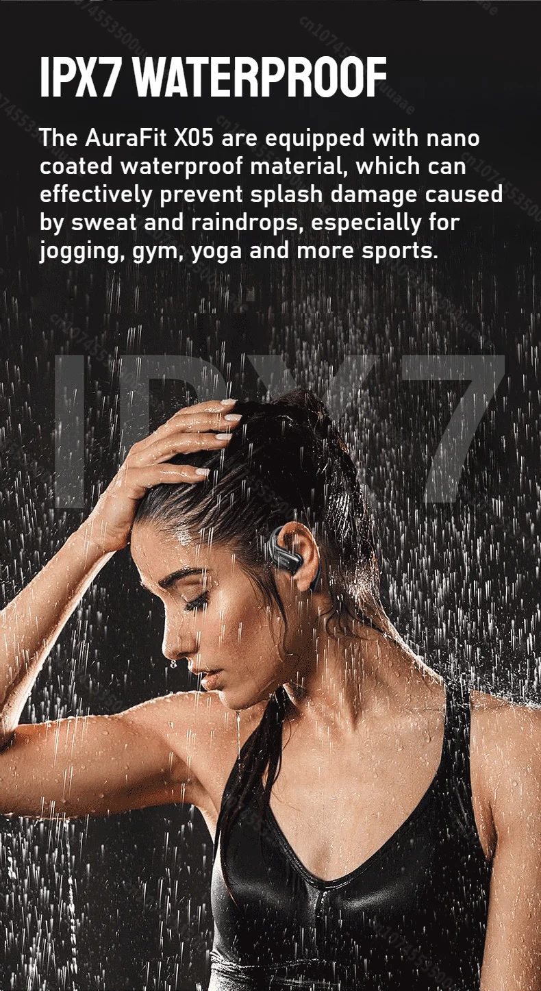 [ IPX7 Waterproof ] The AuraFit X05 are equipped with nano-coated waterproof material, which can effectively prevent splash damage caused by sweat and raindrops, especially for jogging, gym, yoga and more sports.
