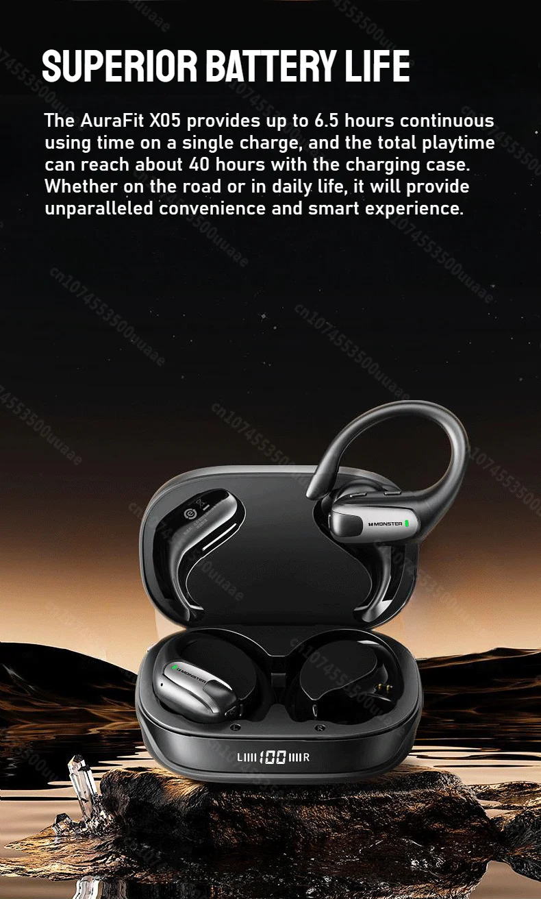 [ 40 Hours Playtime ] The AuraFit X05 provides up to 6.5 hours continuous using time on a single charge, and the total playtime can reach about 40 hours with the charging case. Whether on the road or in daily life, it will provide unparalleled convenience and smart experience.