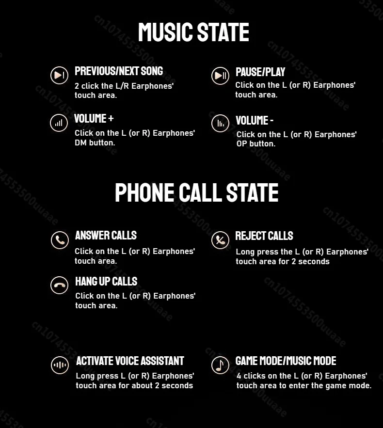 [ Smart Touch Control ] You can control music play/pause, previous/next track, volume+/-, answer/reject, end calls and enable voice assistance by touch area on earbuds. You can easily control it without operating the phone. You can listen to the music while running, working, reading, meeting, etc.