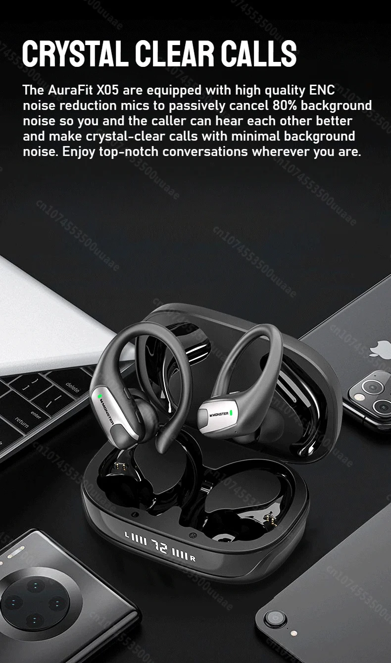 [ Crystal Clear Calls ] The AuraFit X05 are equipped with high quality ENC noise reduction mics to passively cancel 80% background noise so you and the caller can hear each other better and make crystal-clear calls with minimal background noise. Enjoy top-notch conversations wherever you are.