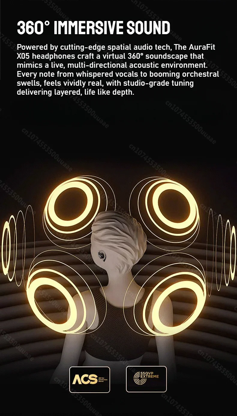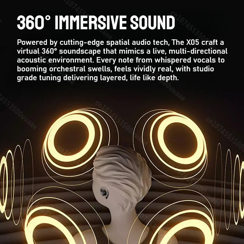 [ 360° Immersive Sound ] Powered by cutting-edge spatial audio tech, The AuraFit X05 headphones craft a virtual 360° soundscape that mimics a live, multi-directional acoustic environment. Every note from whispered vocals to booming orchestral swells, feels vividly real, with studio-grade tuning delivering layered, life like depth. Whether gaming, streaming movies, or losing yourself in music, the hyper-realistic surround effect elevates your senses, making you the center of every scene. Hear beyond boundaries, this is audio nirvana.