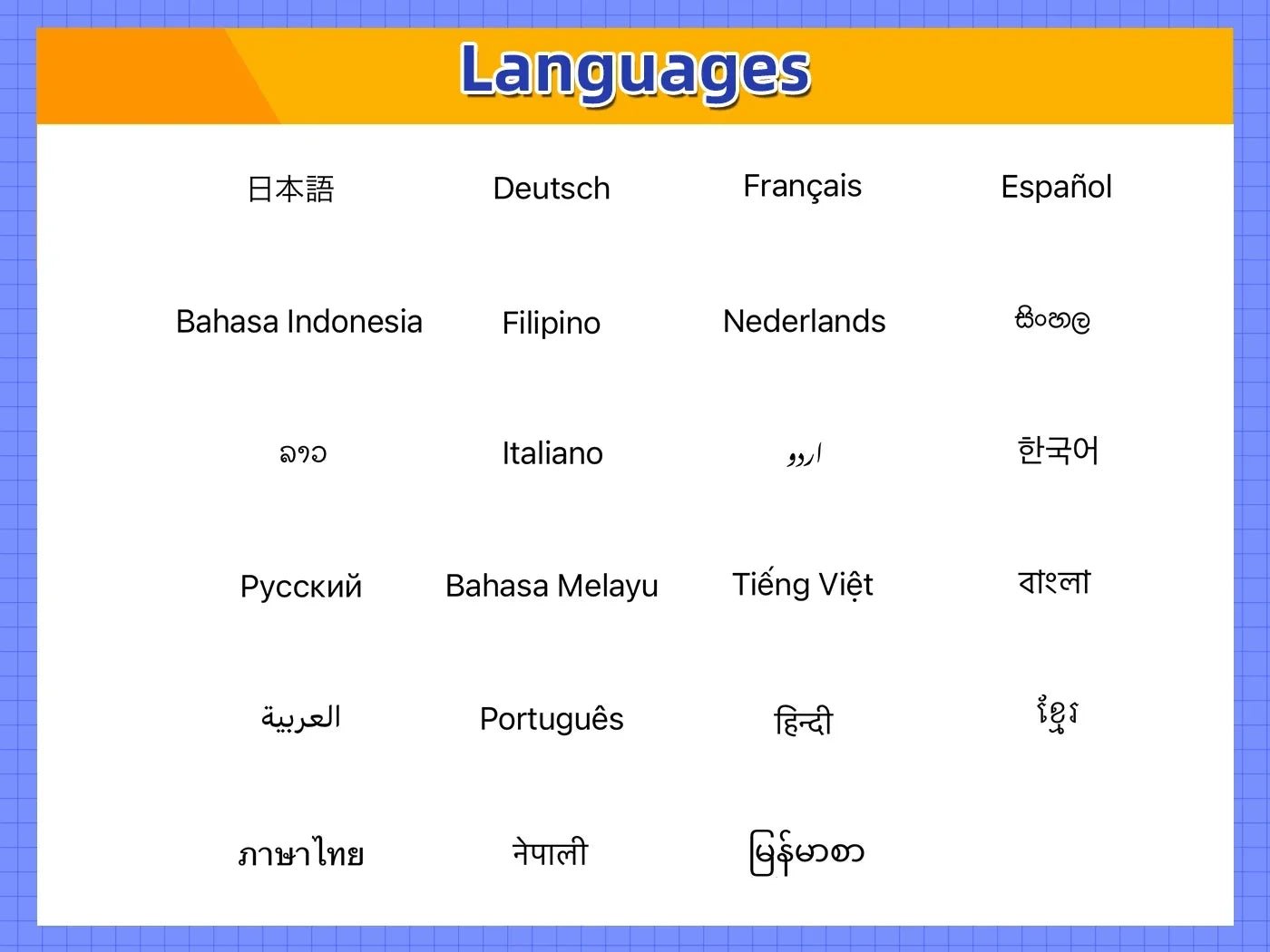 Language: Arabic,German,Russian,French,Korean,Portuguese,Japanese,Spanish,Italian,English,English,Russian,German,French,Spanish,Polish,Portuguese,Italian,Turkish,Norwegian,Korean,Japanese,Arabic